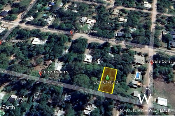 Terreno ubicado en Villa Ciudad Parque los Reartes, sobre calle San Juan, entre calles Constitución y Madariaga; con proyecto aprobado para construcción de 100 mt2 aprox. Con sus fundaciones antisísmicas terminadas .