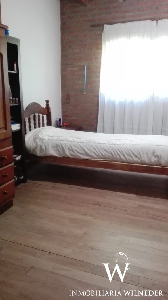 La casa está construida de ladrillo, pisos de porcelanato y flotante en dormitorios, techo de madera y chapa. En el exterior estacionamiento cubierto para un tercer vehículo.