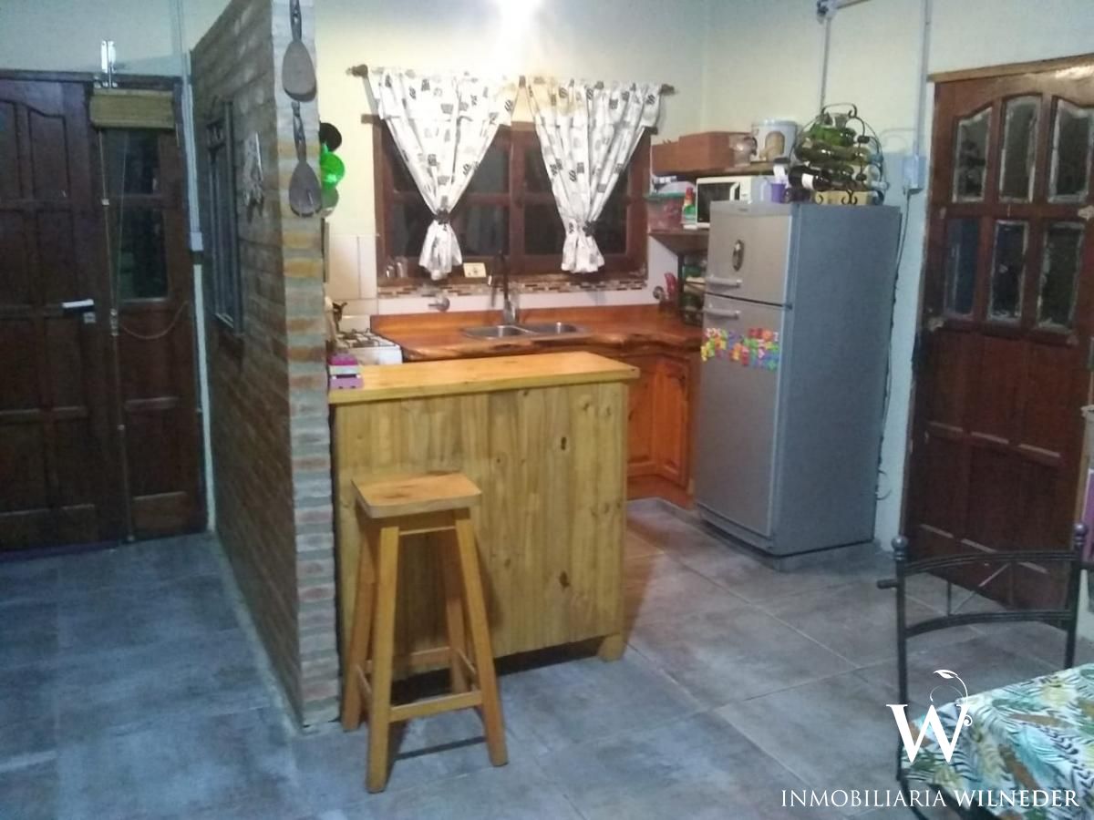 El inmueble esta construido con ladrillo (construcción tradicional)  y techo de madera con muy buen aislamiento y cubierta de  chapa. Cuenta con 2 dormitorios, 1 baño con bañera, amplio ambiente de cocina, living con hogar central y  comedor. En el exterior estacionamiento cubierto para un vehículo y asador.