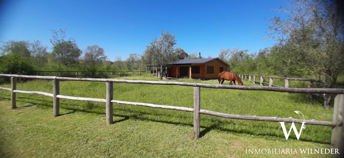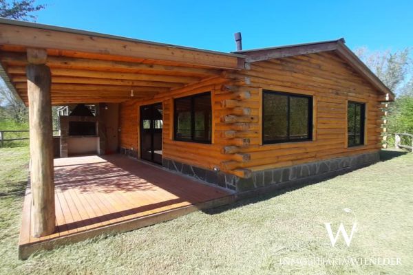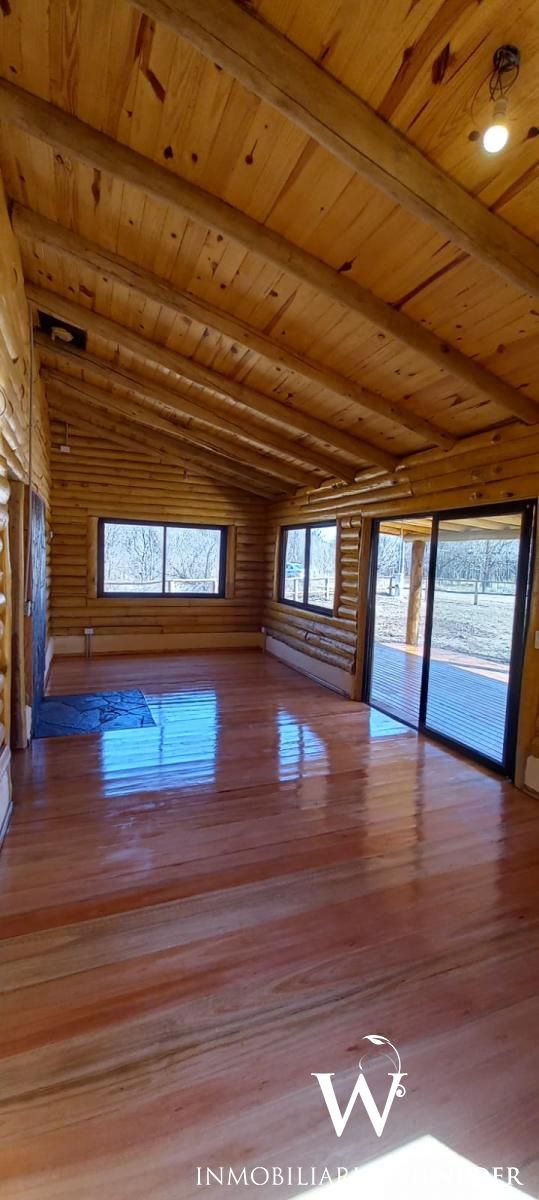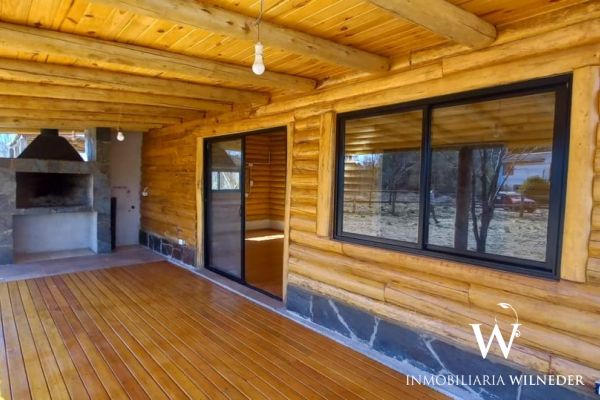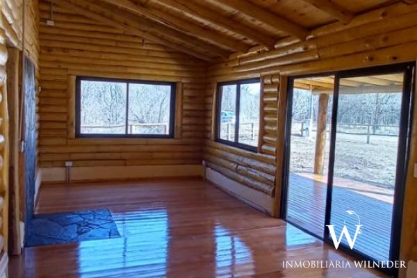 Cabaña de tronco, 90 m² cubiertos. Platea de hormigón,  piso de madera de eucalipto premium, carpintería de aluminio negra premium, 1 baño,ante baño, 2 dormitorios, cocina, comedor y living integrados (instalación para salamandra) galería con asador, cochera para 2 vehículos  de troncos,  agua con pozo propio, bomba, 3000/3500 lts/h (todo nuevo), luz, cerramiento de troncos, terreno limpio, planos  aprobados..