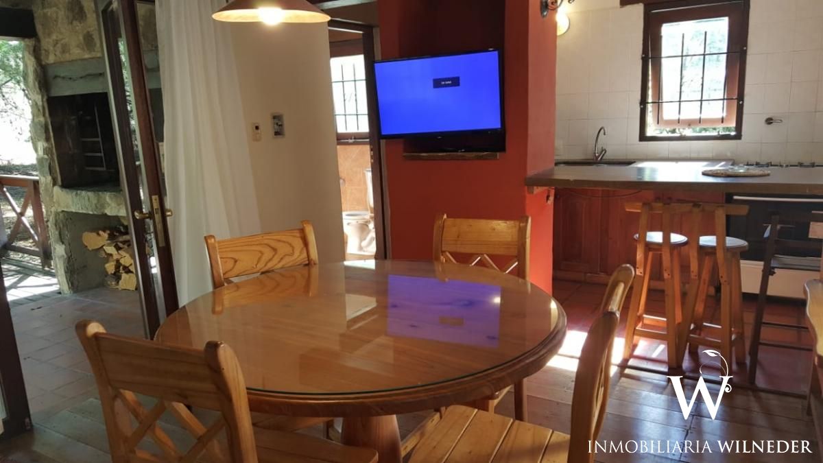 Planta baja: Kitchenette con cocina con horno heladera bajo mesada, Desayunador, Comedor, living con sofá cama.