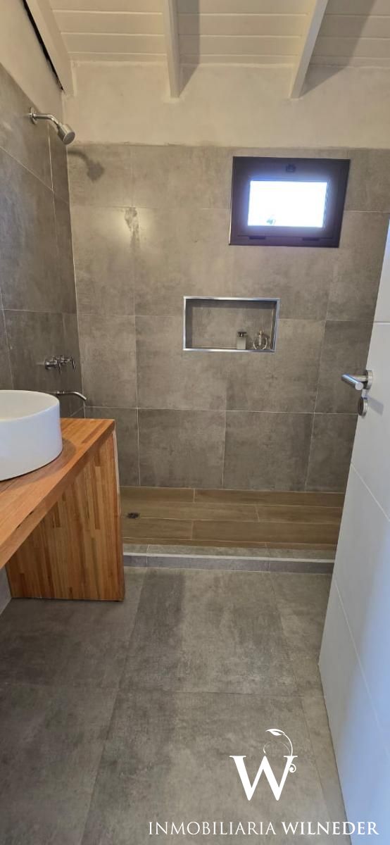 Segundo baño con antebaño. Ambos con sanitarios Ferrum línea Bari y gritería monocomando. Living comedor de 8x6. Todo el revestimiento de pisos y zócalos son de porcelanato, incluso en galería cubierta con asador. Cocina con revestimiento de porcelanato y alacenas en mdf texturado hilado, mesada de mármol negro boreal, pileta Johnson Luxor y monocomando. Todas las aberturas son de aluminio línea Módena color bronce colonial y doble vidrio (dvh).