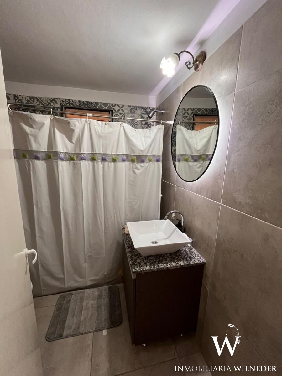 Construcción de material, techo de madera y chapa, aberturas de aluminio, puerta de ingreso de madera, piso pocelanato.