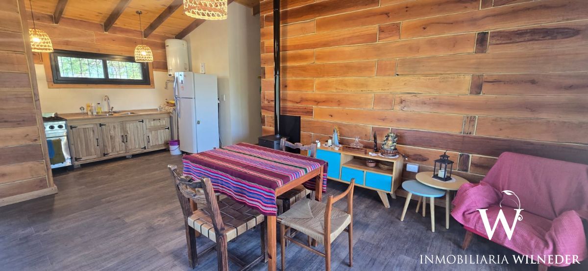 La vivienda incluye: camas sommier nuevas, mesa de comedor, cortinas, sillones individuales, heladera, cocina semi industrial, estufa a leña, lavarropa, 3 ventiladores de techo.