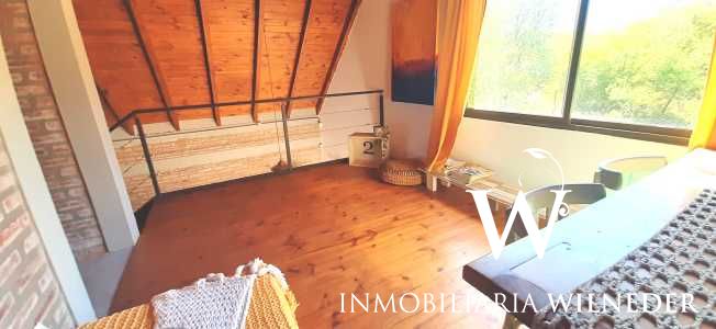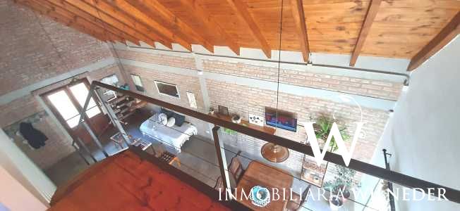 La vivienda se distribuye en dos plantas. En planta baja amplio ambiente y moderno espacio integrado de cocina, living comedor.  En la misma planta un dormitorio y un baño. Por escalera se accede a planta alta donde se encuentra un espacio ideal para oficina, biblioteca, play room y desde allí da ingreso a un baño y dormitorio.