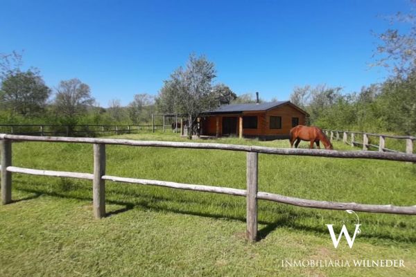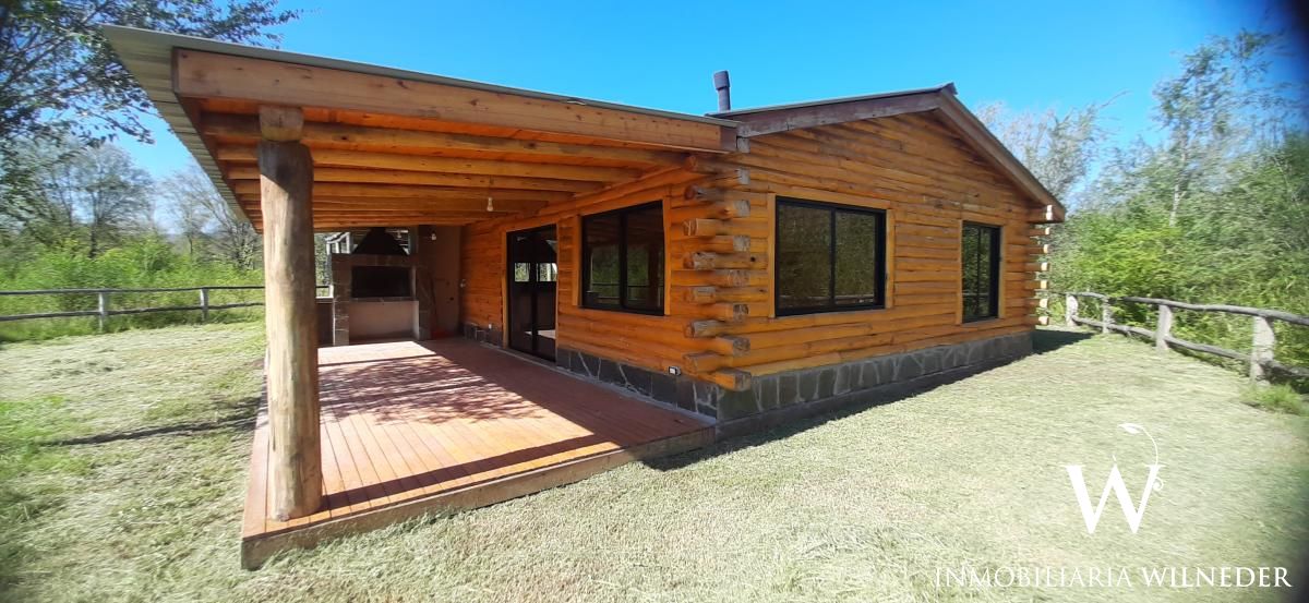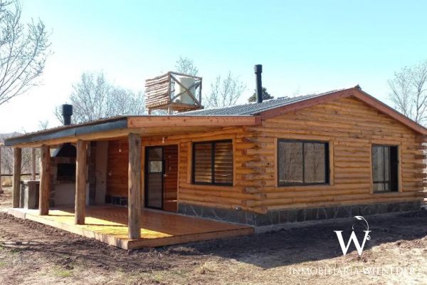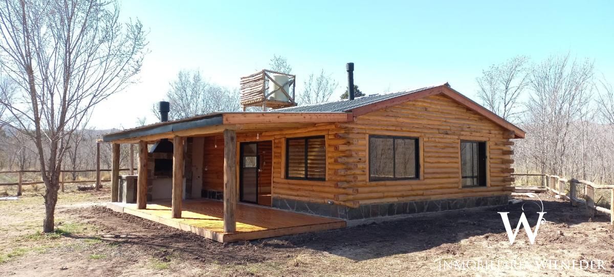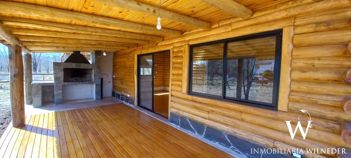 Cabaña de tronco, 90 m² cubiertos. Platea de hormigón,  piso de madera de eucalipto premium, carpintería de aluminio negra premium, 1 baño,ante baño, 2 dormitorios, cocina, comedor y living integrados (instalación para salamandra) galería con asador, cochera para 2 vehículos  de troncos,  agua con pozo propio, bomba, 3000/3500 lts/h (todo nuevo), luz, cerramiento de troncos, terreno limpio, planos  aprobados..