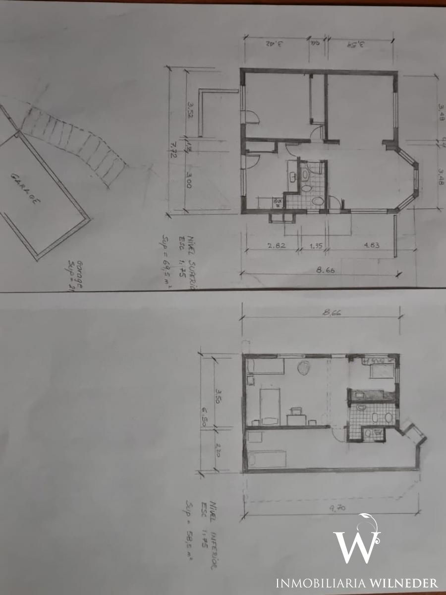 La casa se distribuye en dos plantas y además tiene un gararge separado.