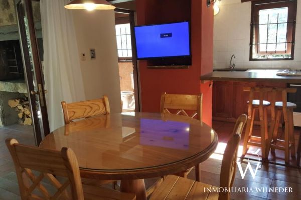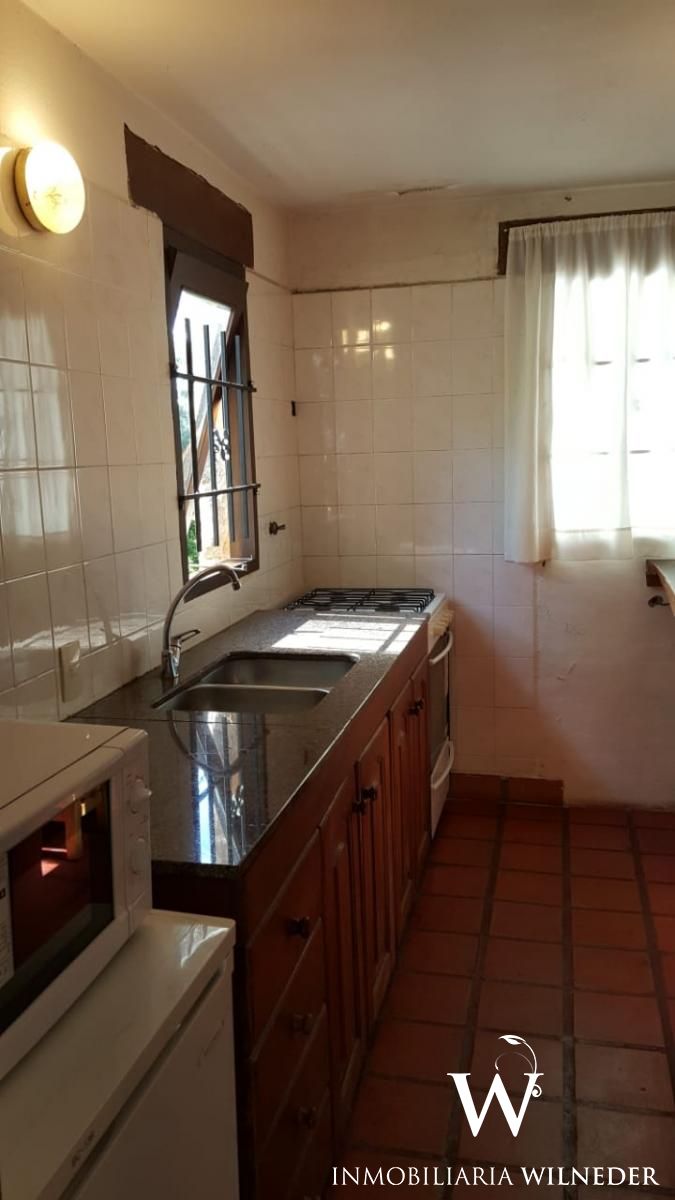 Planta baja: Kitchenette con cocina con horno heladera bajo mesada, Desayunador, Comedor, living con sofá cama.