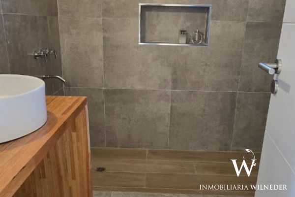 Segundo baño con antebaño. Ambos con sanitarios Ferrum línea Bari y gritería monocomando. Living comedor de 8x6. Todo el revestimiento de pisos y zócalos son de porcelanato, incluso en galería cubierta con asador. Cocina con revestimiento de porcelanato y alacenas en mdf texturado hilado, mesada de mármol negro boreal, pileta Johnson Luxor y monocomando. Todas las aberturas son de aluminio línea Módena color bronce colonial y doble vidrio (dvh).