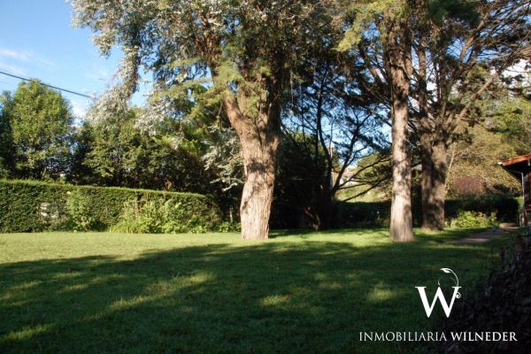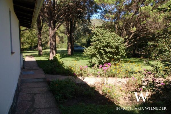 Gran terreno completamente parquizado con cerco perimetral y cerco verde, frutales, flores, senderos .