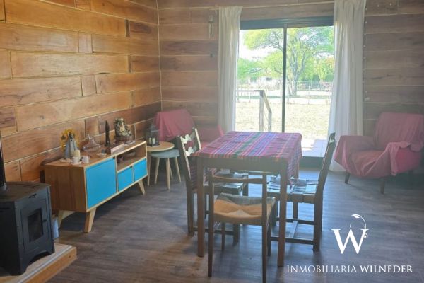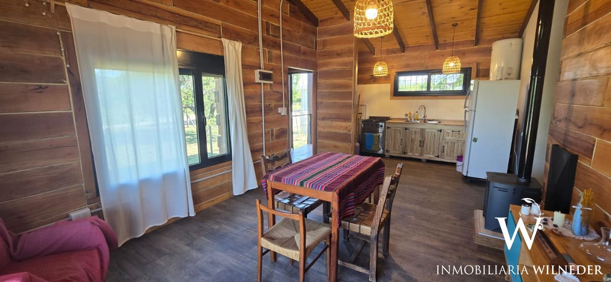 La vivienda incluye: camas sommier nuevas, mesa de comedor, cortinas, sillones individuales, heladera, cocina semi industrial, estufa a leña, lavarropa, 3 ventiladores de techo.